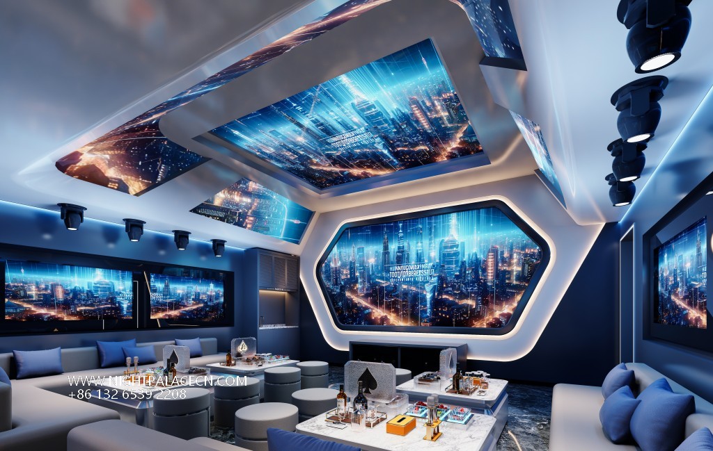 The in-store boxes have their own characteristics, which can meet the needs of different customer groups: some are equipped with giant curved screens and urban night scenes, which make people feel like they are in a futuristic city; some are designed with purple light and waves to highlight the romantic style; some use geometric light strips and metal elements to show the simple and fashionable style. The boxes are equipped with high-quality audio equipment and high definition large screens, which support the latest music library and multimedia interaction. Whether it is friends gathering, birthday parties or business leisure, you can enjoy an audio-visual feast.