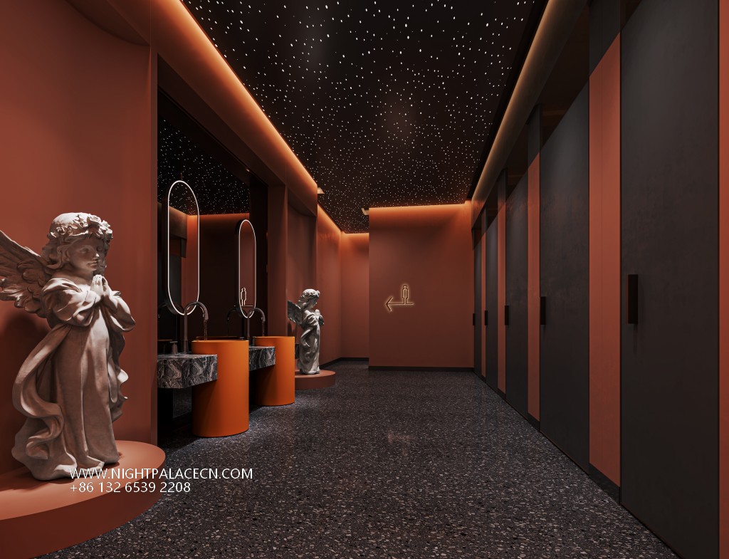 The theater breaks through the single performance function and provides multiple content such as musicals, Live singing, and theme parties. The details show humanistic care: the bathroom logo is designed with a humorous design of "male/female/health/diet" to convey the concept of health, while slogans such as "PUSI YCUR SEL" (improve your self) reinforce the brand attitude. Windows system song screen, multi-area sound linkage and other technical configurations ensure that every audience is immersed in sound and light art.
