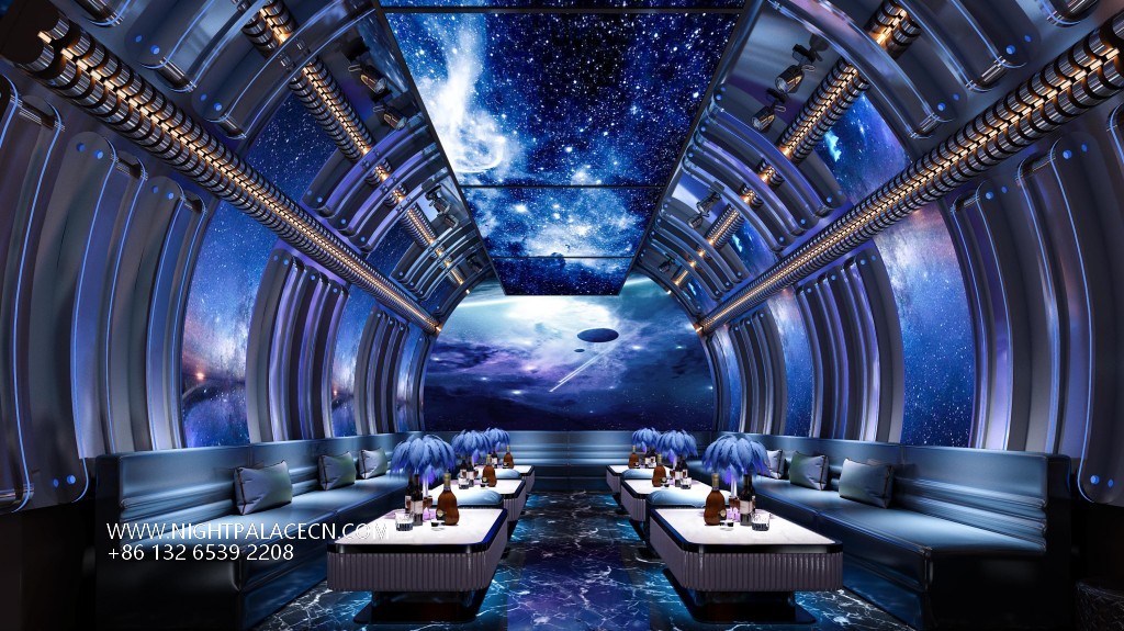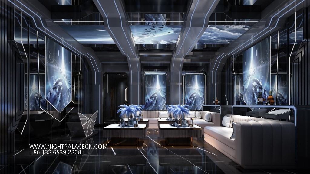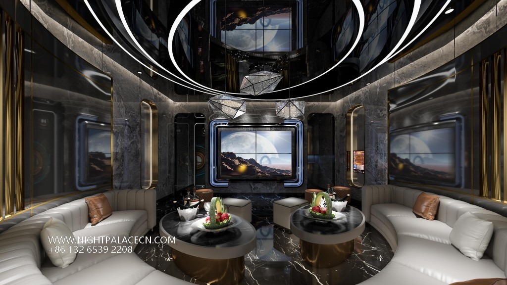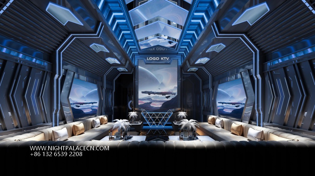 Space covers open card seats and private boxes to meet different entertainment needs. The multi-screen linkage system (main screen, side screen, song-ordering screen) supports Karaoke, audio-visual, and game free switching, and the Windows interface expands the diversity of content; the top audio and synchronous lighting system ensures the shock of the sound field. Featured designs such as sci-fi-themed murals, specular reflection walls, and custom lighting matrices further enhance the interactivity and ritual of the scene.