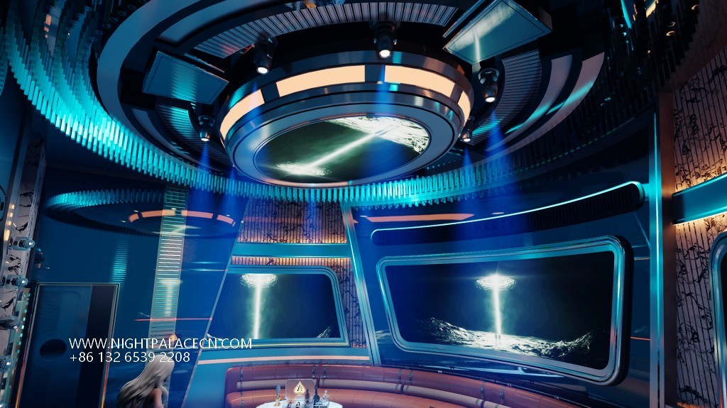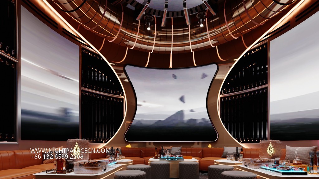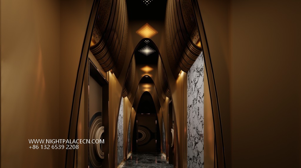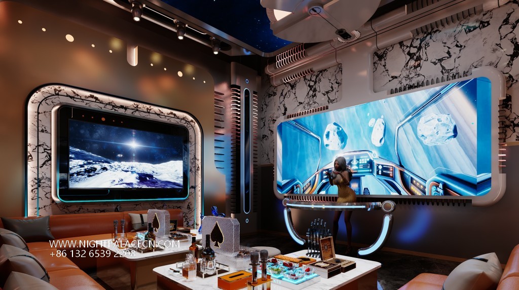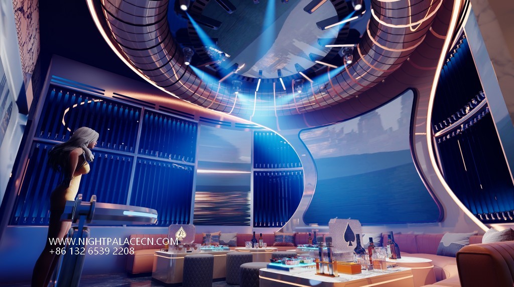 Space covers open party areas, private boxes and leisure corridors to meet different needs. The central stage area is equipped with a circular light matrix, suitable for performances and interaction; the KTV box adopts a multi-screen linkage system, which supports the free switching of audio and video entertainment; the characteristic corridor creates an Internet celebrity clock in arched ceiling, blue light band and metal decoration. Technology empowers the experience: top sound system, Windows song ordering interface and "ZERO TV" interactive screen to ensure the cutting-edge and diversity of entertainment content.