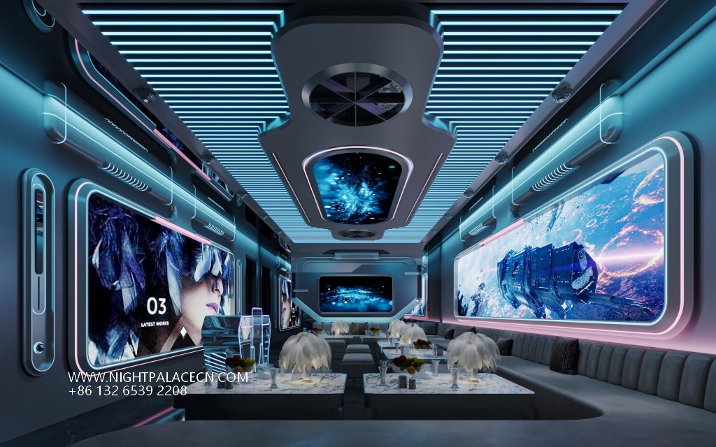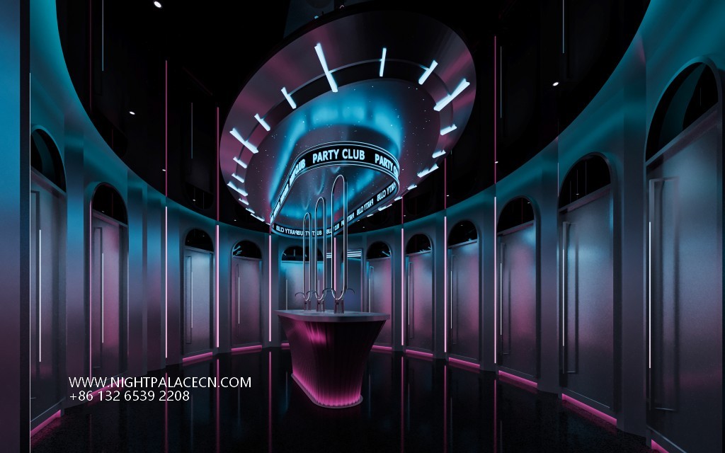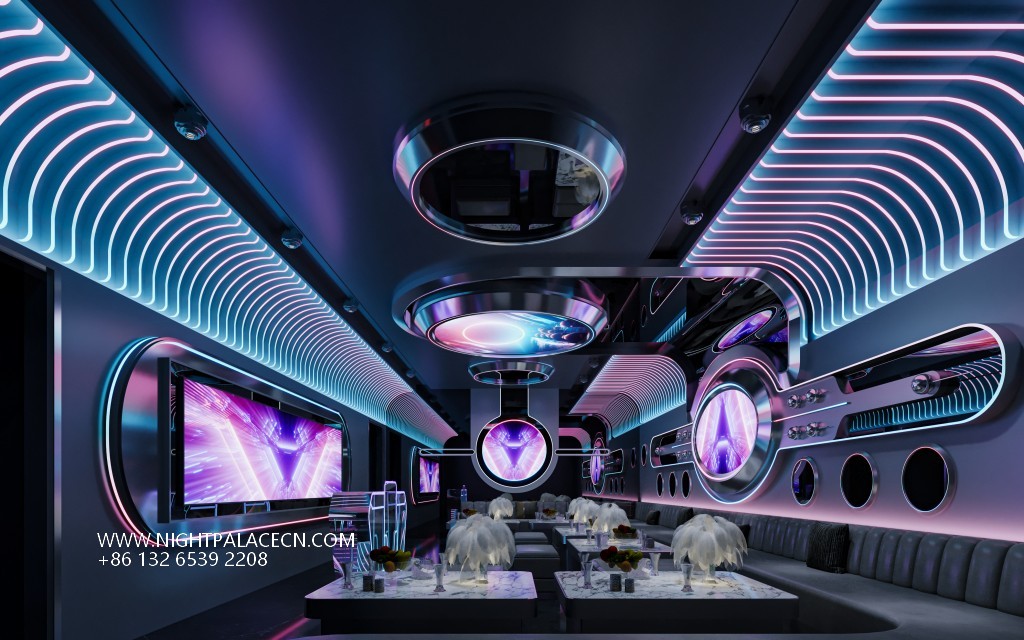 The space covers open card seats, private boxes and Internet celebrity clock in areas (such as star toilets, locker corridors) to meet different needs. The multi-screen linkage system supports free switching between Karaoke, audio and video games, and the Windows interface expands the diversity of content; the top sound and synchronous lighting system ensure the sound field is shocking. Featured designs such as party stage and circular light matrix further enhance the sense of interactive ritual.