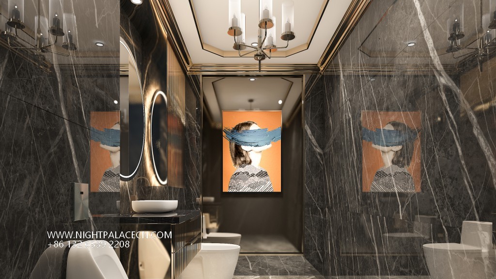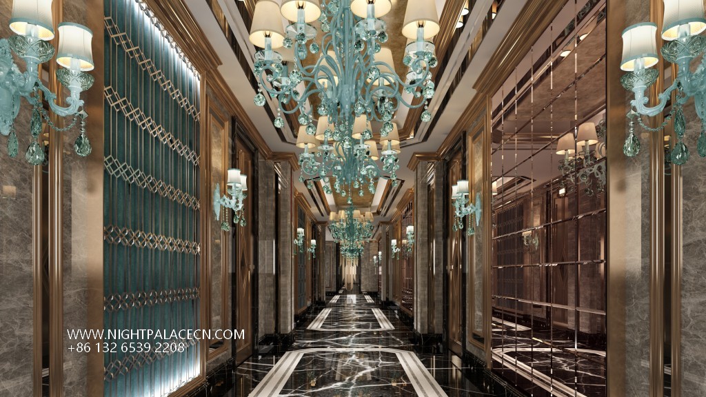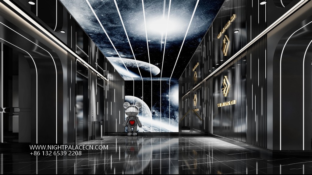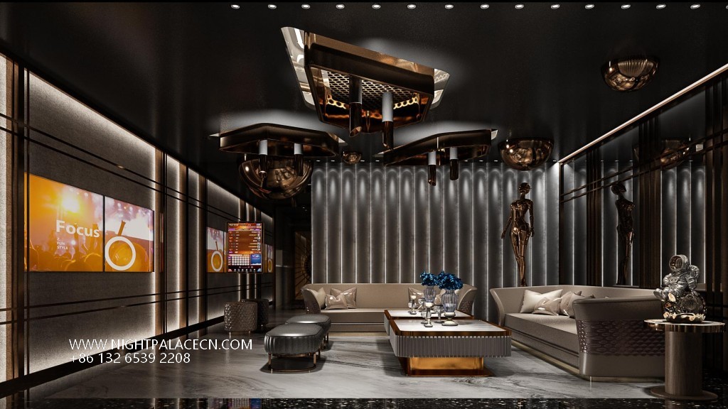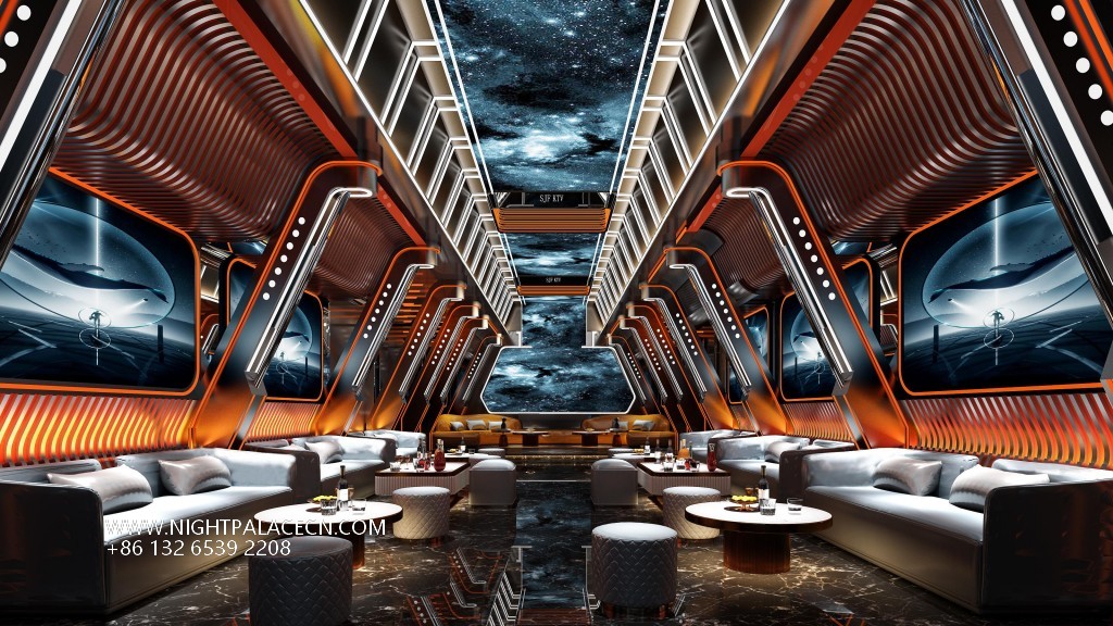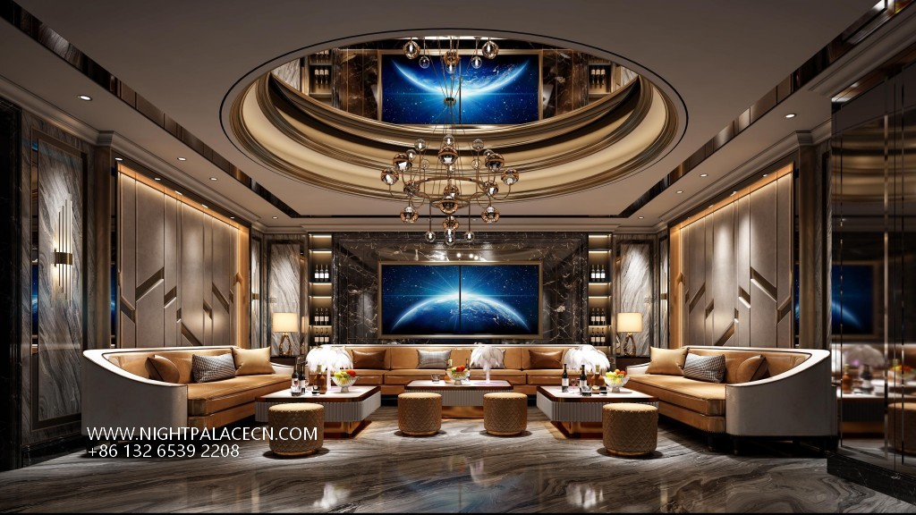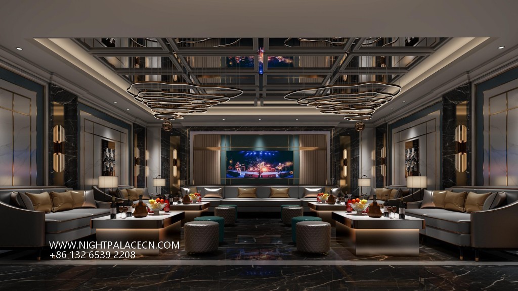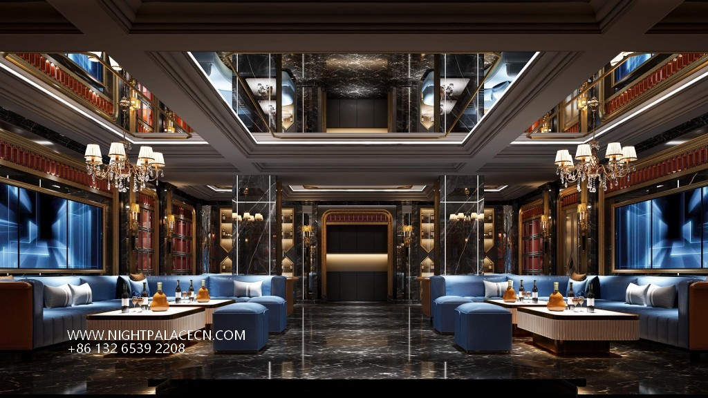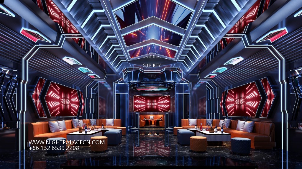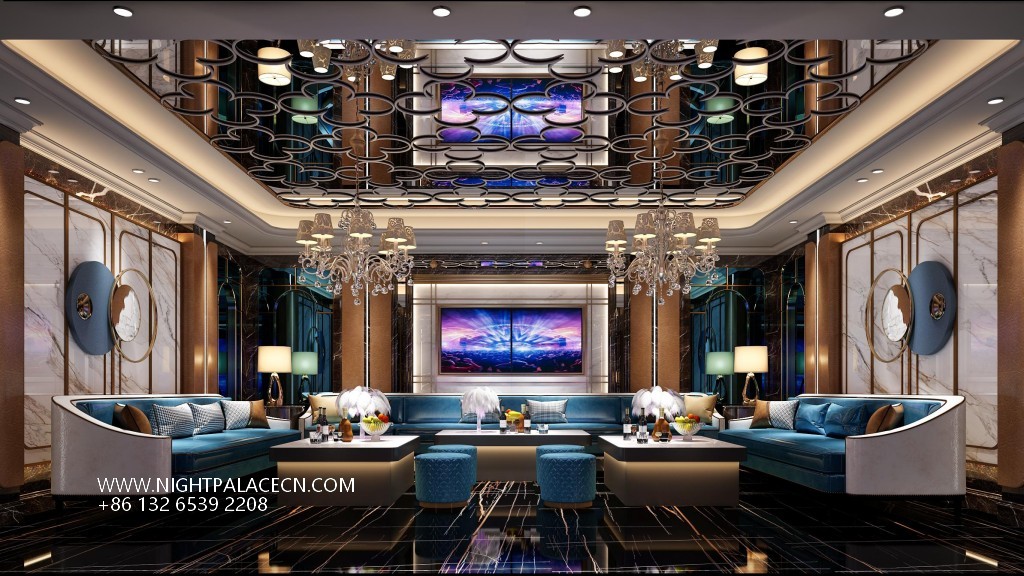 The space covers business banquet areas, party boxes and art corridors. The open box is equipped with a multi-screen linkage system, which supports Karaoke, audio and video to switch freely; the private area is warm with wooden walls and orange leather seats; the Internet celebrity corridor is extended with blue crystal chandeliers and mirror walls. Technology configuration focuses on experience: top sound system, Windows song ordering interface and synchronous lighting programming to ensure that the sound and painting are synchronized and shocked.
