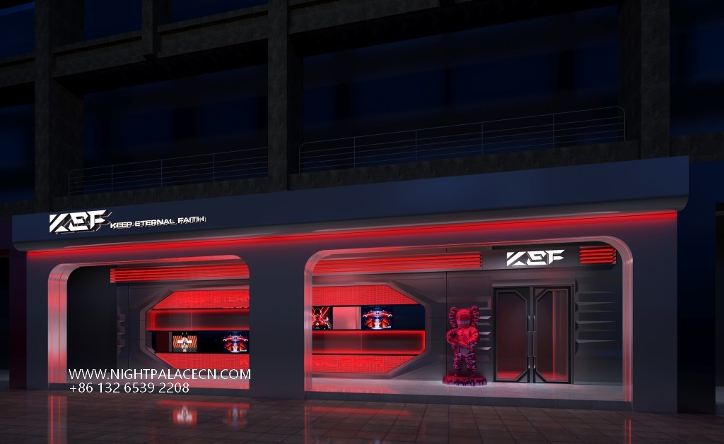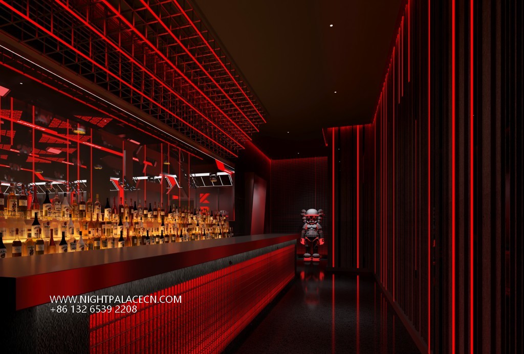 The space covers the main dance floor, bar area, and the clock in mechanical devices. The central dance floor is equipped with state-of-the-art audio and dynamic lighting systems, which cooperate with the DJ table to create the core of sound waves; the bar area is outlined with red halos, and the bartending performance enhances the sense of interactive rituals; the robot device and fox-shaped IP elements become the background for Internet celebrities to take pictures. Technology configuration enhances the experience: The intelligent lighting system can switch modes with music, from psychedelic blue-purple to blazing red, creating an atmosphere rhythm at different times.