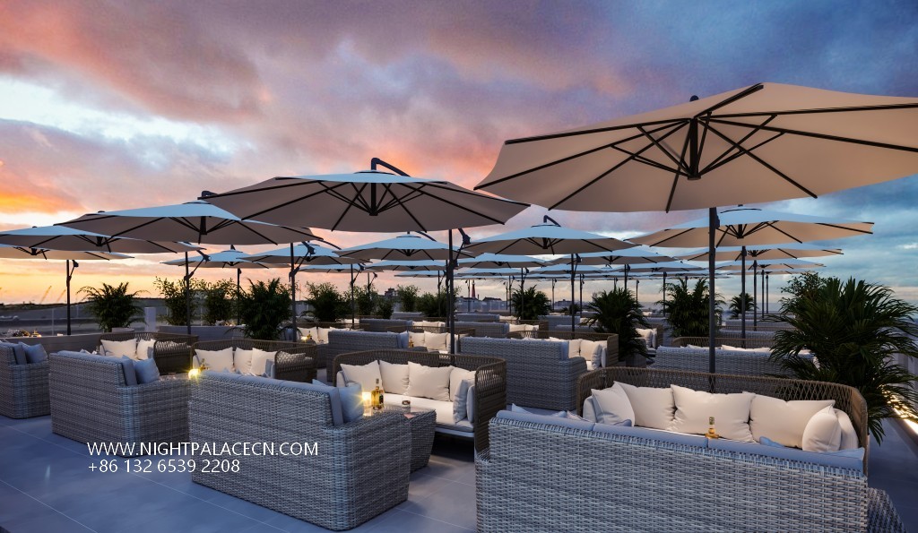 The space covers the riverside outdoor area, the main hall performing arts area, the channel lounge and private boxes. The outdoor leisure area is equipped with rattan sofa sets and candlelit coffee tables, suitable for sunset drinks; the main hall can switch modes, which is an art space during the day and a party scene at night; the channel lounge is guided by arches of light and shadow to explore, and professional wine cabinets meet the needs of tasting. Technology is hidden in the details: the intelligent lighting system can be adjusted with the scene, from the warmth of the outdoor sunset to the fiery indoor party.