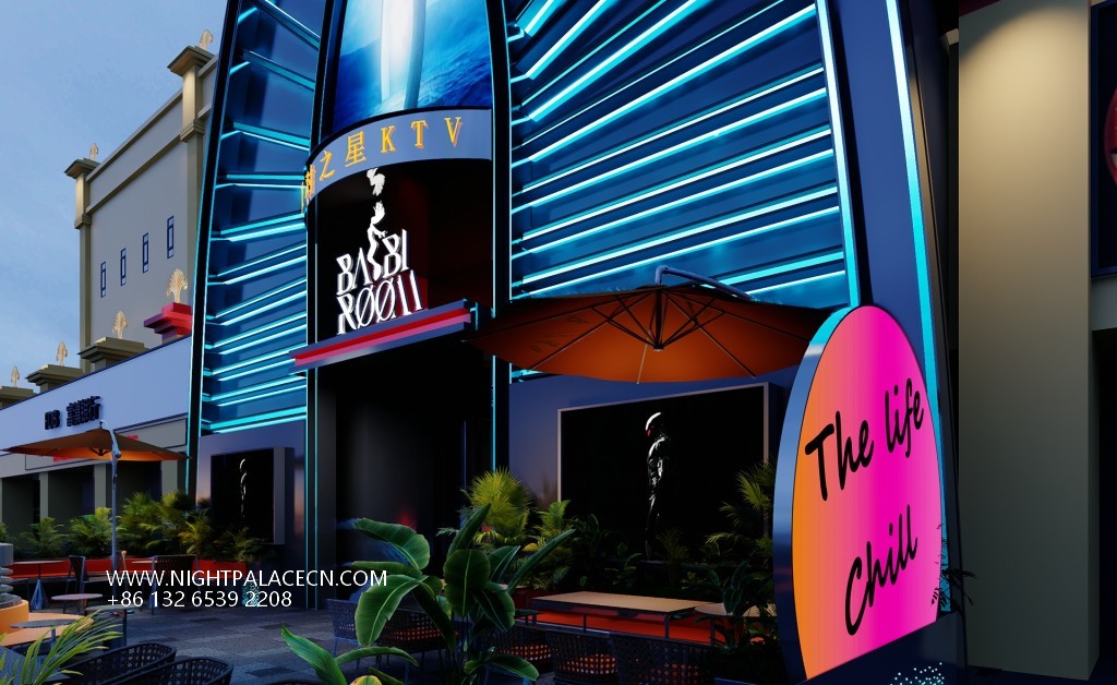 Party Star Bangkok Thailand takes "Cyberpunk × Crossover Entertainment" as the core positioning, and deeply integrates futuristic lighting art, KTV entertainment and outdoor leisure scenes to create a unique and influential comprehensive entertainment space in the China-Myanmar border area. Its design reconstructs the experience dimension of border nightlife through the multi-faceted innovation of red and blue visual collision, geometric structure language and crossover functions.