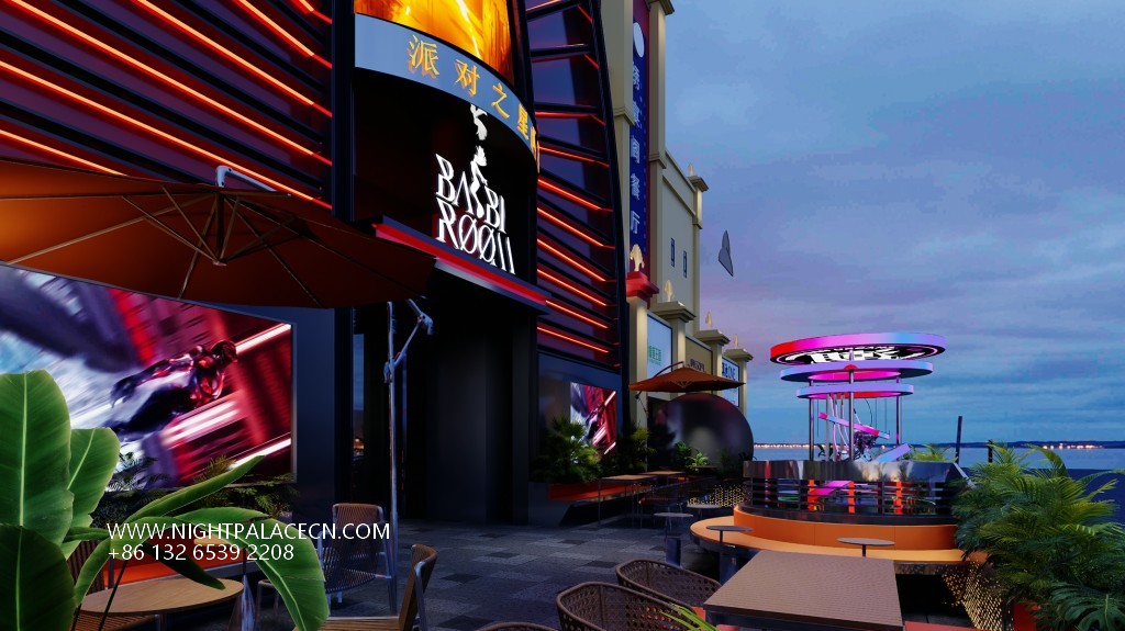 The space covers KTV boxes, outdoor leisure areas, entertainment areas in the main hall, and tide play clock in points. The outdoor area meets the needs of evening drinks and socializing; the main hall creates a party scene with professional sound and lighting systems; the circular screen wall combines visual art and interactive entertainment functions. Technology is hidden in the details: the intelligent lighting system can switch modes - from warm outdoor light to cyber glare indoors, to adapt to different atmospheres.