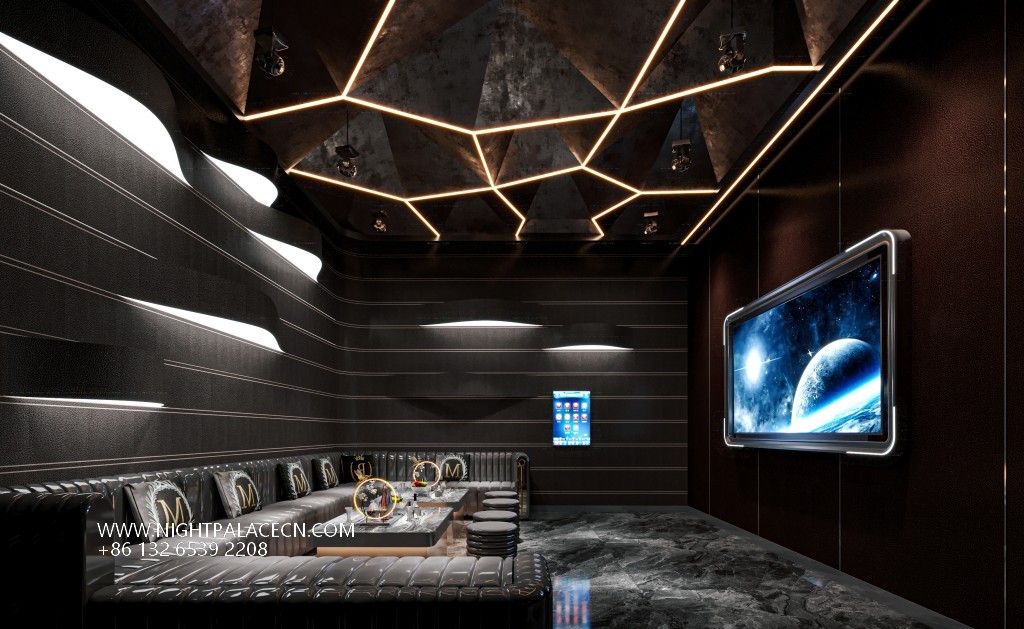The space covers the party area of the main hall, the cave box, the technology corridor and the art lounge area. The central dance floor is equipped with a state-of-the-art sound system, and the lighting can be switched to the music mode - from the blue psychedelic channel to the blazing red and purple in the main hall; the planetary screen and polygonal light ceiling in the box create a private audio-visual feast. Technology hides in the details: intelligent light control system and specular reflection design to expand the sense of spatial depth.