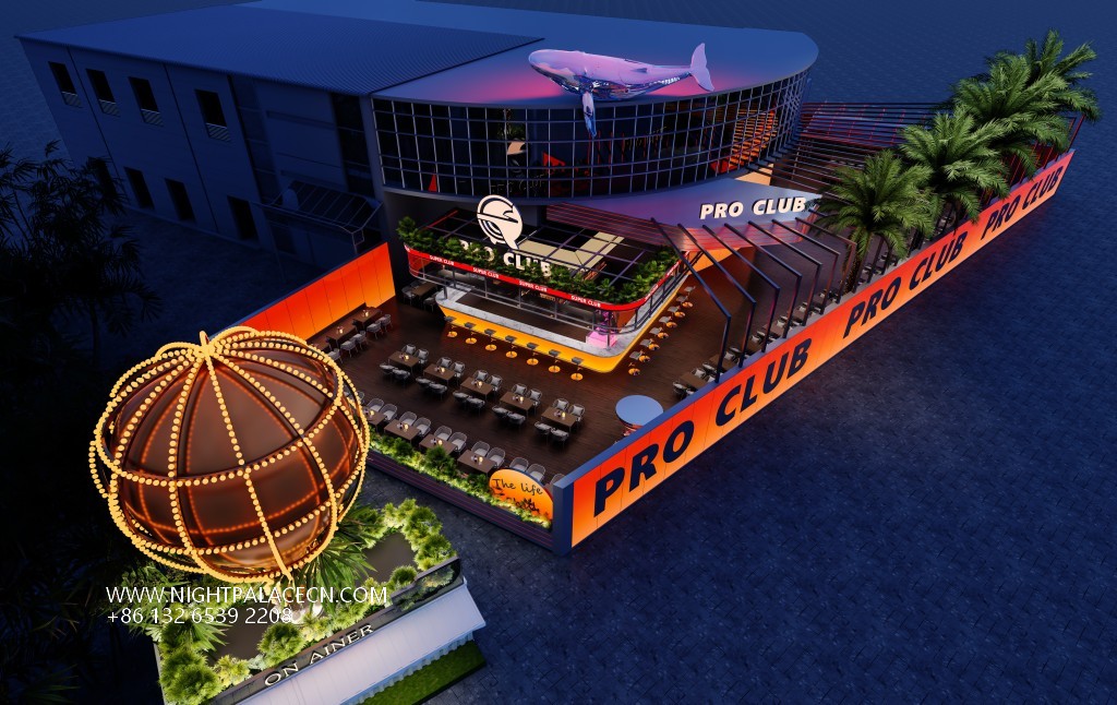 The space covers the party area of the main hall, the open-air leisure area, the PRO exclusive area and the cybercorridor. The central dance floor is equipped with a state-of-the-art sound system, and the starry sky top can switch modes - from blazing red indoors to warm yellow in the open air; the PRO area enhances the VIP experience with metal fences and exclusive screens; and the outdoor table and chair combination adapts to social needs in the tropical night breeze. Technology is hidden in the details: intelligent light control system and specular reflection design expand the depth of space.