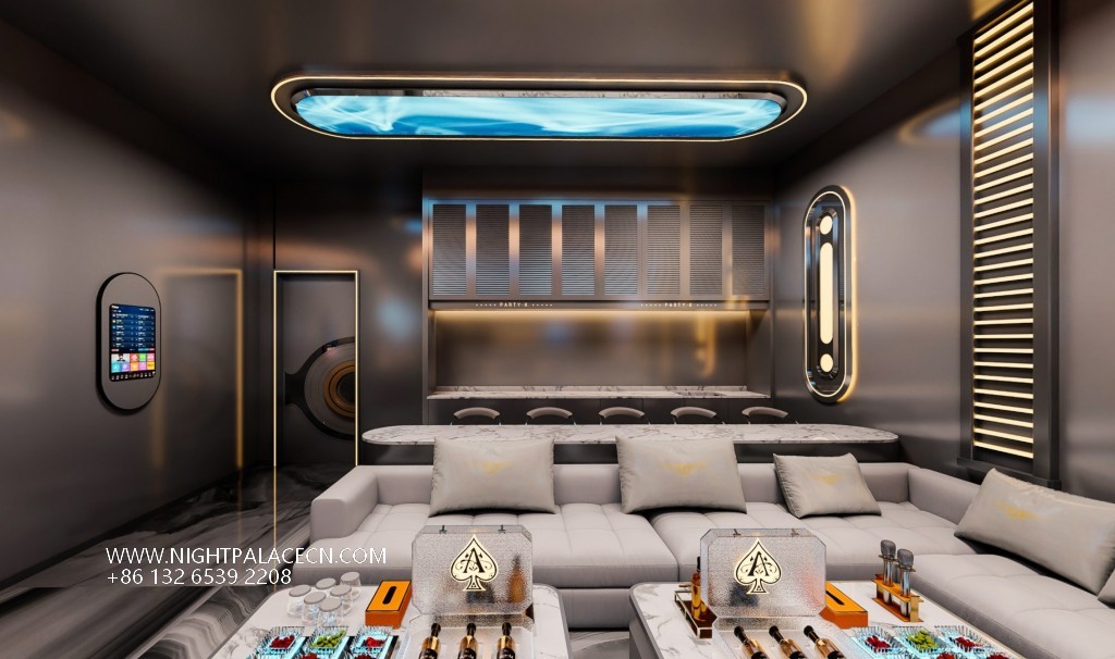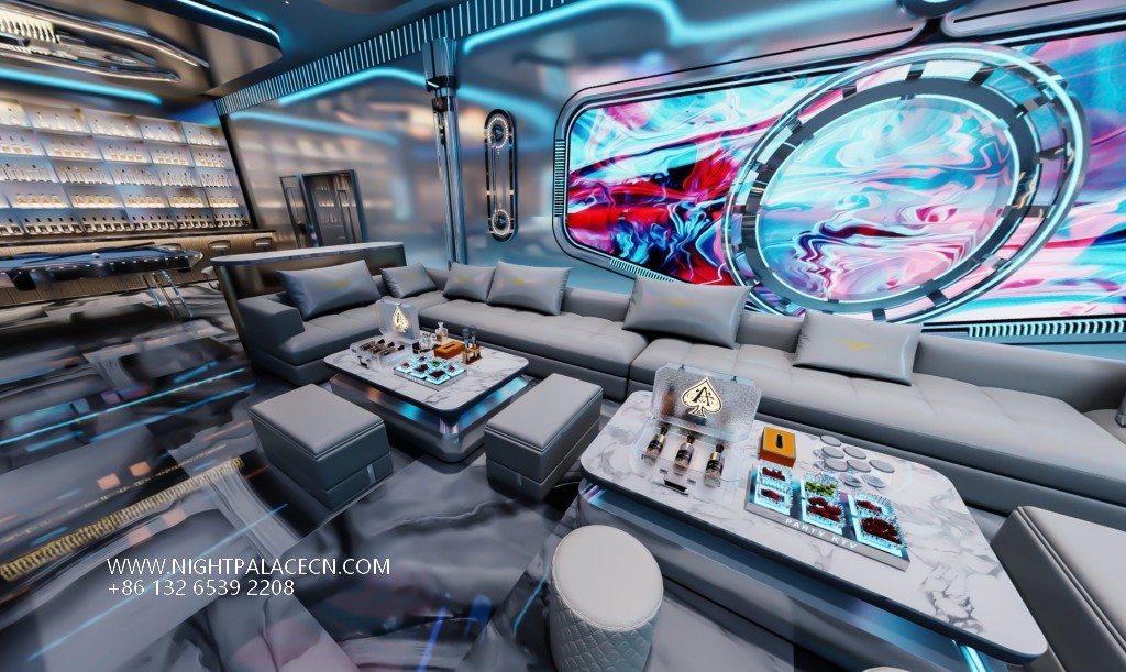 The box is equipped with top-of-the-line audio and multi-screen linkage system, which supports free switching of Karaoke, audio and video games; the billiard area and the bar are seamlessly connected to promote social interaction. Technology is hidden in the details: The intelligent lighting system can switch modes with the scene, from the colorful Karaoke to the quiet wine tasting, to adapt to multiple needs. Details such as the ice bucket of spades and the arrangement of themed snacks further highlight the high-end service quality.