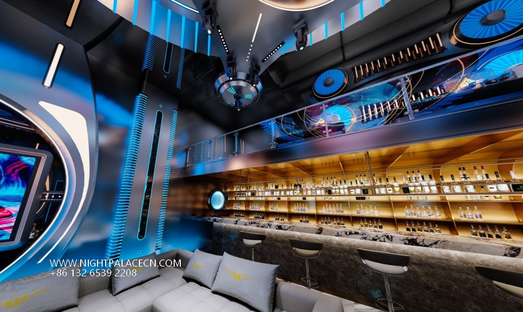 Space covers KTV box, central bar, DJ stage and casual booth. The boxes are equipped with state-of-the-art audio and multi-screen linkage systems, supporting Karaoke, audio and video to switch freely; the bar provides professional bartending services, high stools meet social needs; the DJ table is equipped with hanging audio, suitable for theme parties. Technology is hidden in the details: the intelligent lighting system can switch modes with music - from the fiery color of the party to the quiet blues of rest, to adapt to different scene needs.