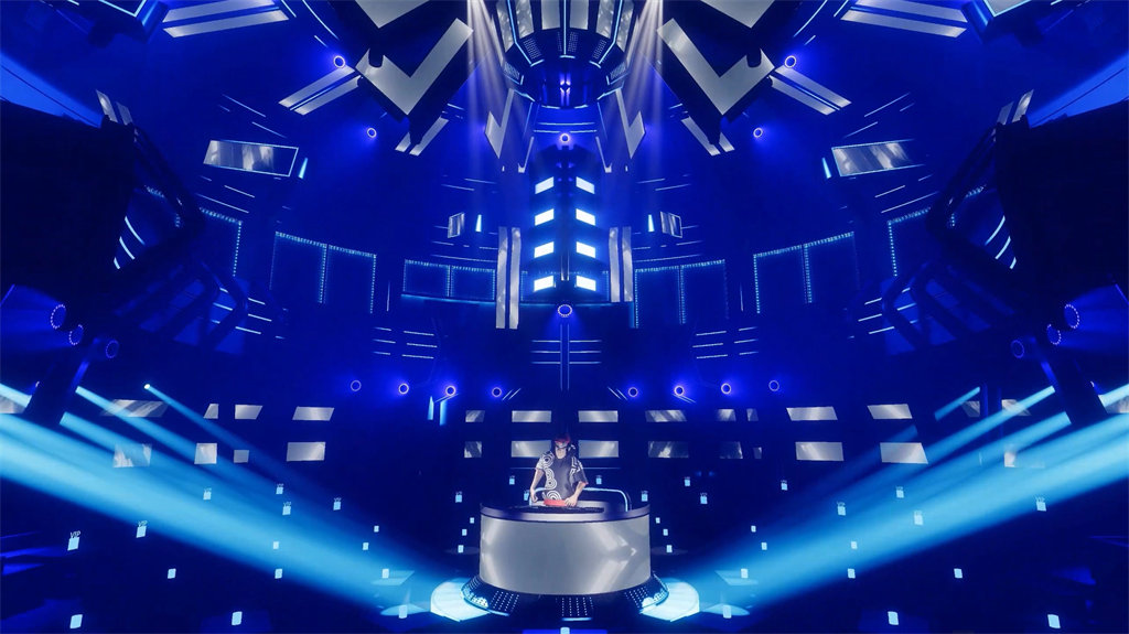 Opposite the rotating DJ table is the ** main DJ table ** directly in front of the hall, which becomes the atmosphere center of the entire space. The main DJ table is remodeled in a modern design language, decorated with metal and light, full of futuristic sense without losing the fanatical atmosphere of a nightclub. The main DJ table and the rotating DJ table complement each other to form a double DJ interactive space layout, providing more possibilities for events and parties. Especially in large-scale events or theme nights, the linkage design of the main DJ table and the rotating DJ table can push the atmosphere of the entire venue to a climax through the combination of lighting, music and interactive performances.