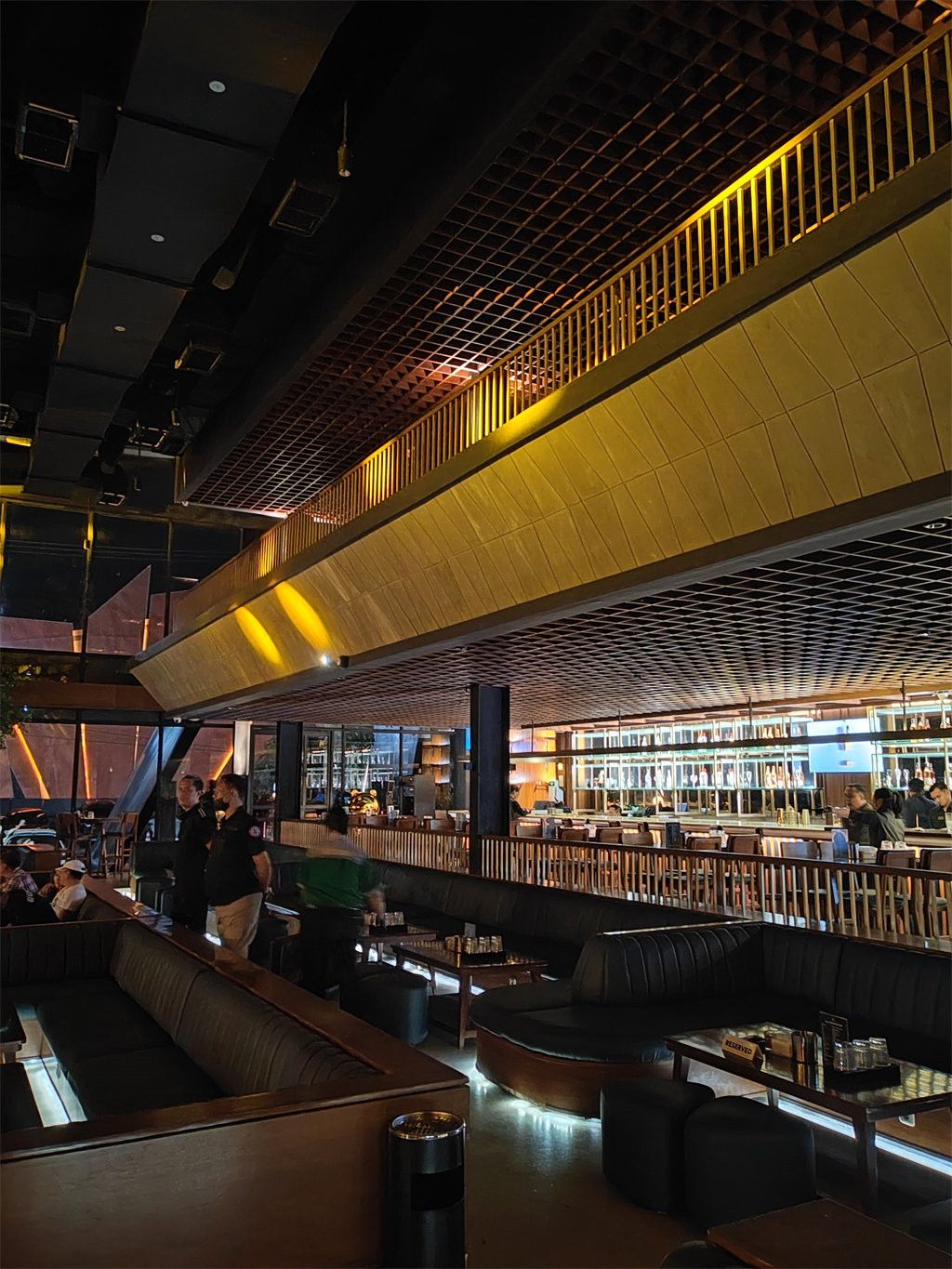 The whole bar is dominated by ** wood style **, from the floor to the wall, to the ceiling, all use natural wood or wood grain decorative materials to create a warm and natural atmosphere. The delicate and soft wood texture makes the space full of affinity, and also injects a unique artistic atmosphere into the whole place. In order to avoid monotony, wooden elements are combined with modern materials such as metal and glass in the design. For example, in the bar area, wooden countertops are matched with metal borders, which not only retains the natural texture, but also adds a touch of modern industrial style delicacy. The wall part adopts a wooden grille design, which not only enhances the sense of hierarchy of the space, but also has certain acoustic functions, which optimizes the sound performance of the bar.