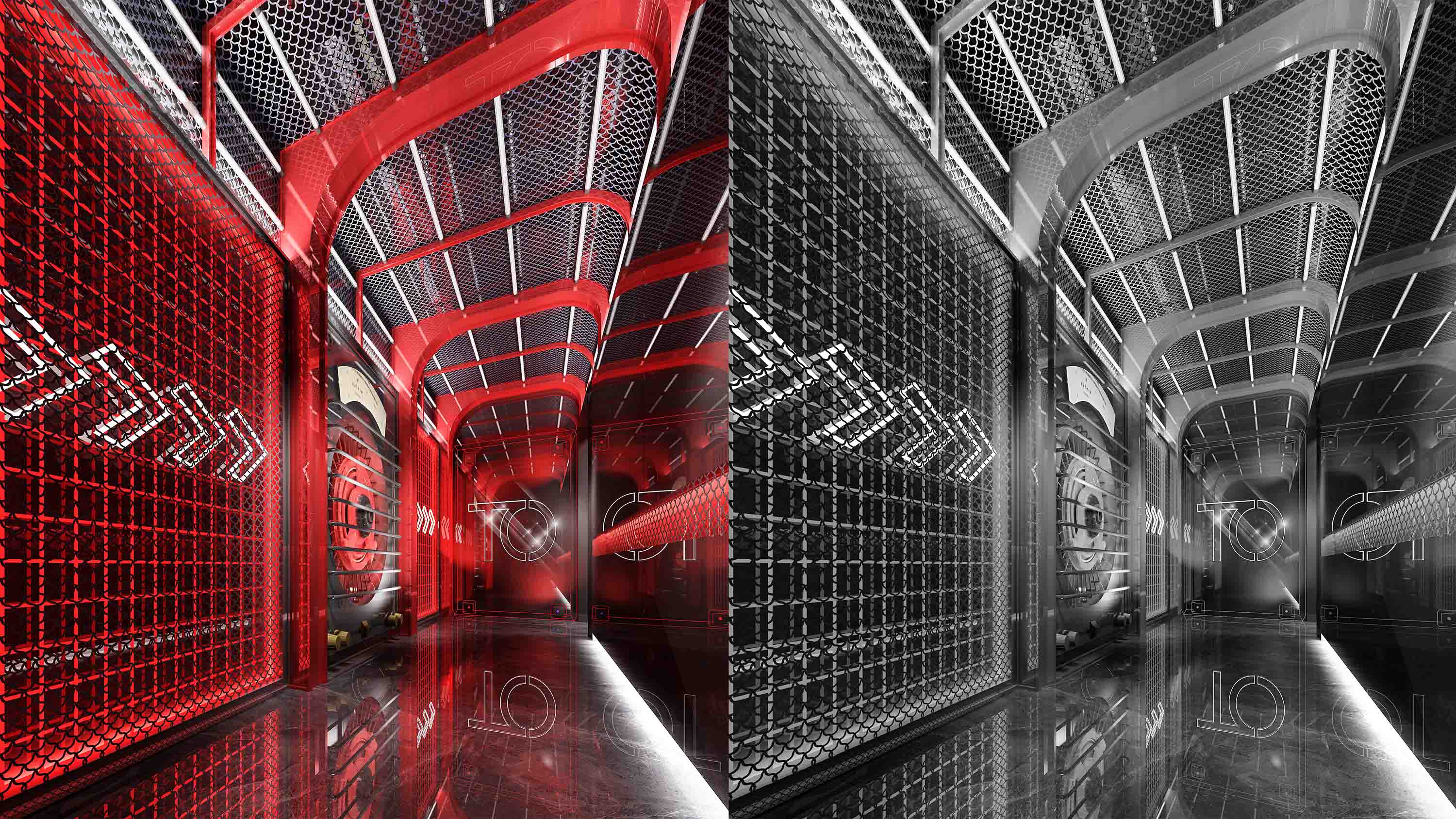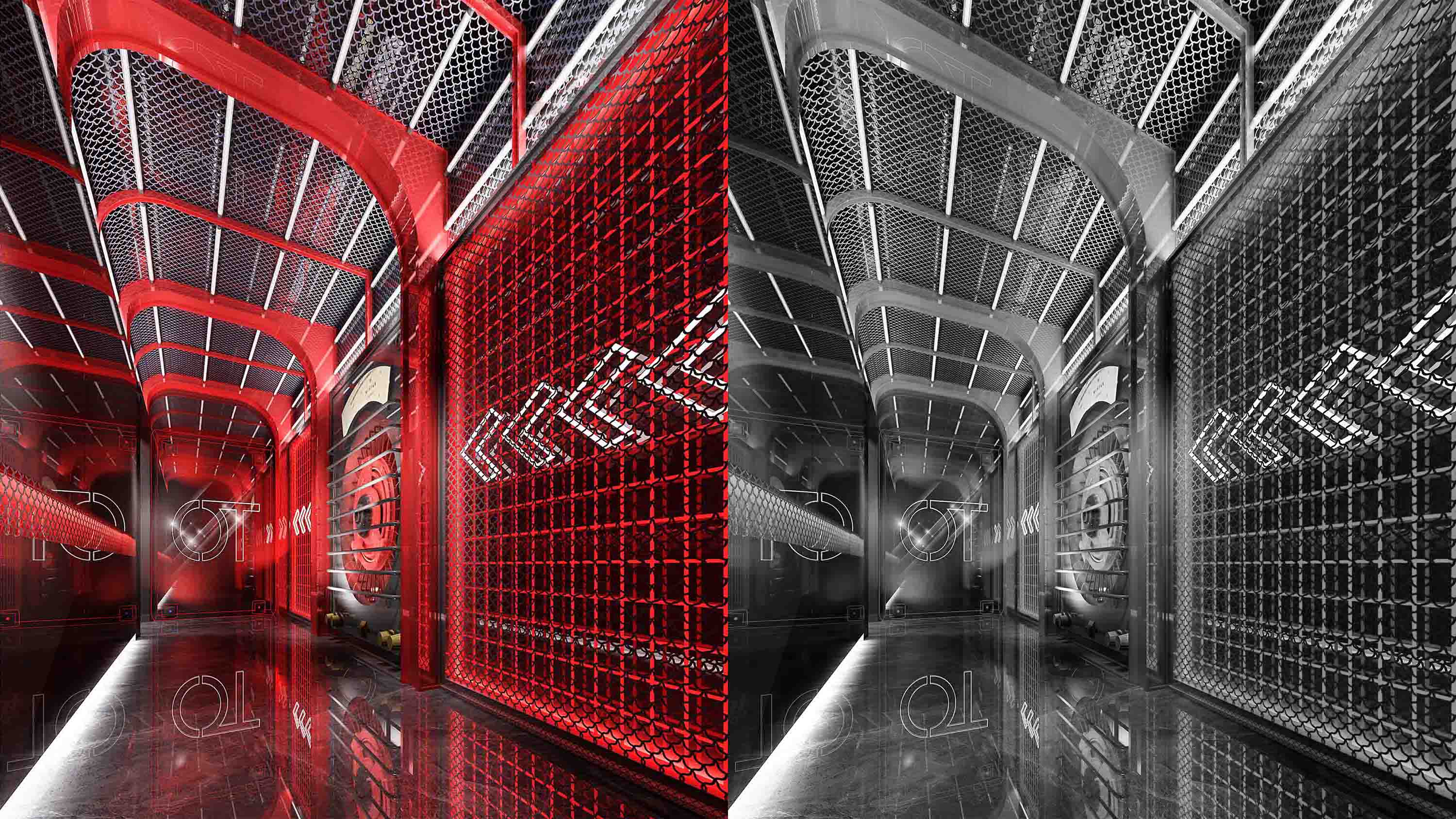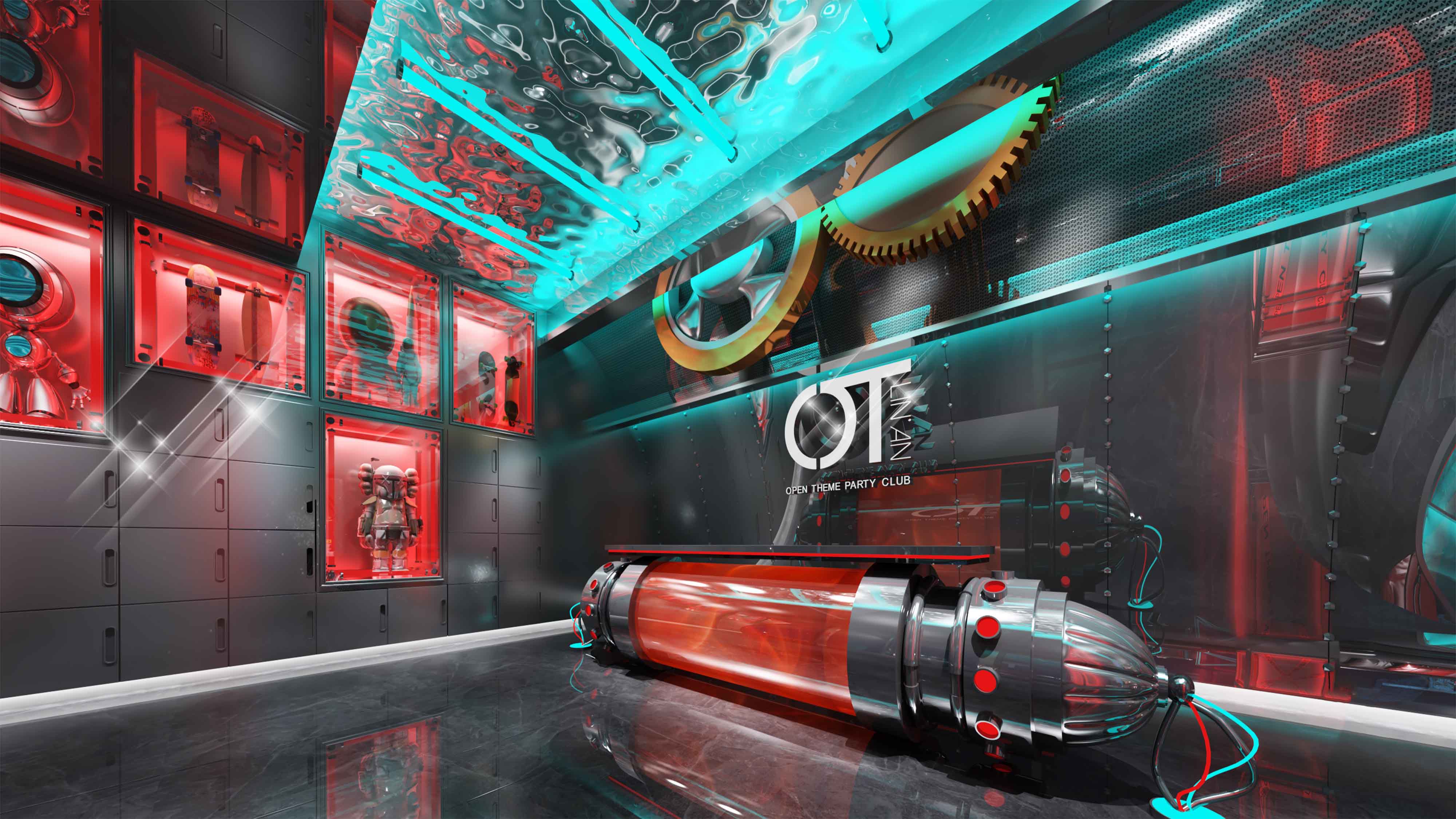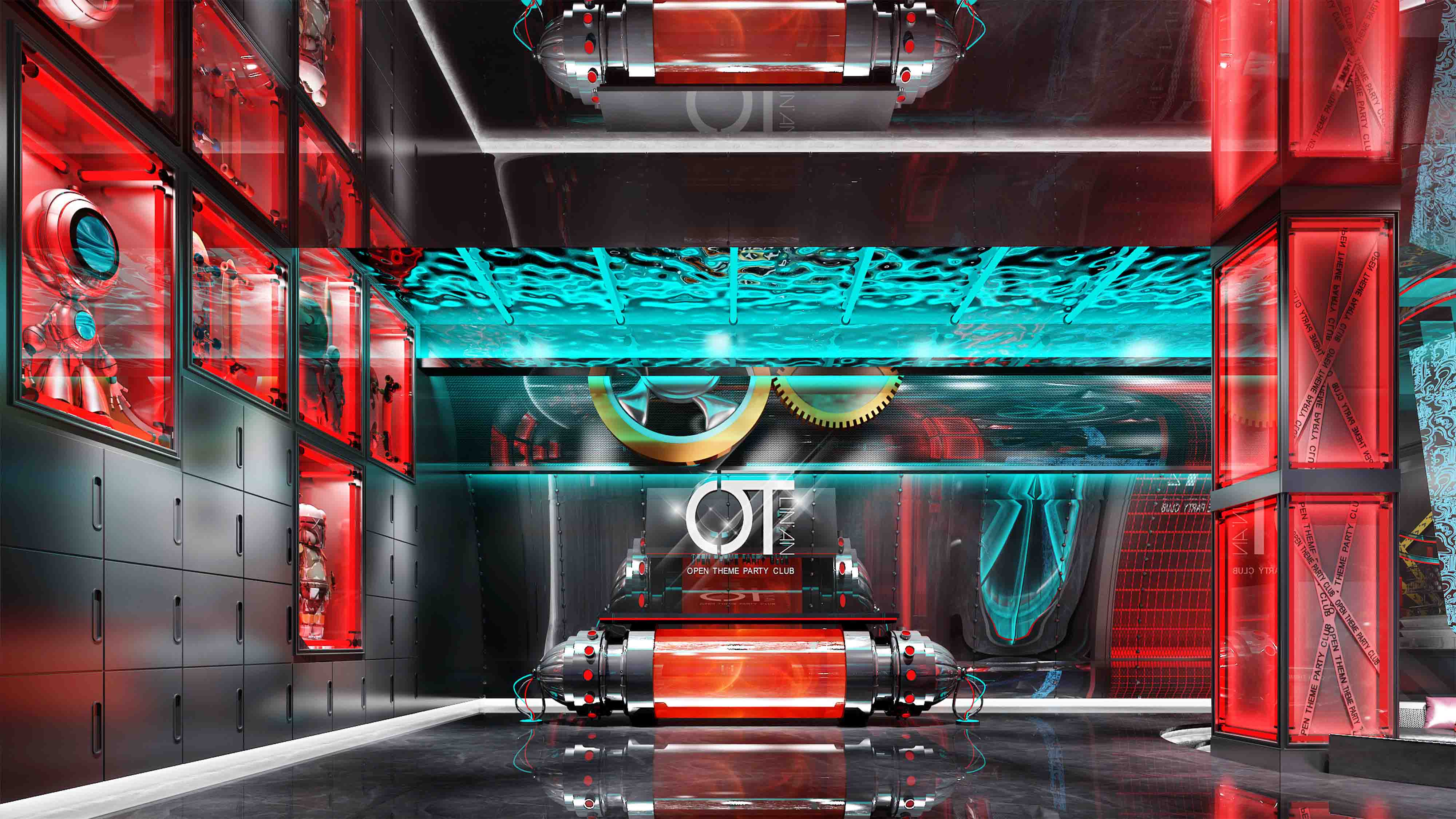 Through the turbine shape full of mechanical aesthetics, the color difference between red and blue is impacted to create an aesthetic sense of future technology.