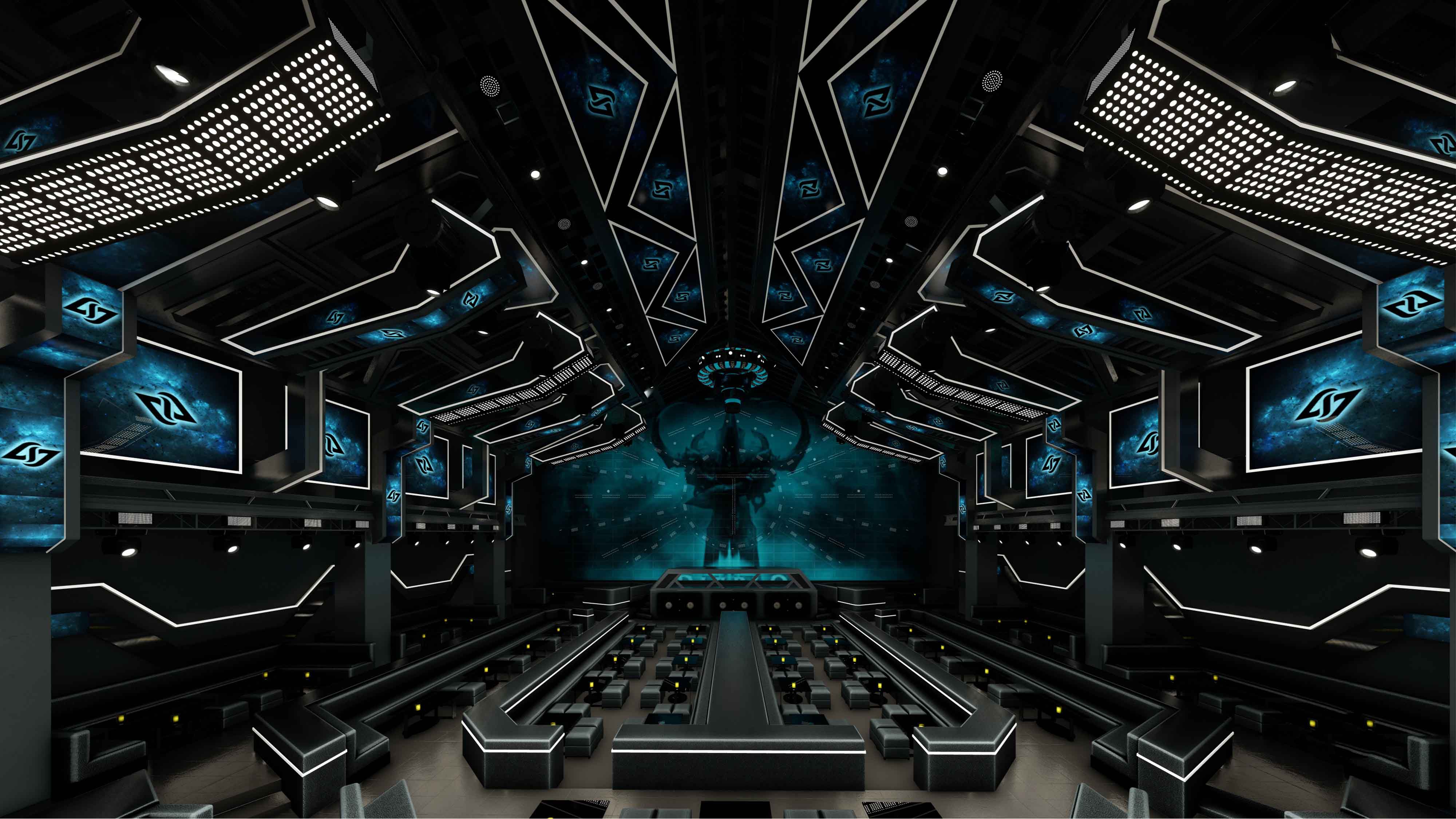 The top of the hall is like a giant turbo engine, making us feel as if we are in a giant warship in the future technology world.